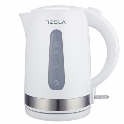 Електрическа кана Tesla KT200WX, 2200W, 1.7 литра, Скрит нагревател, Strix Control, Светлинен индикатор, Бял/Инокс