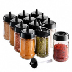 Комплект бурканчета за подправки Kosova 430KSV1468, Стъкло, 300 мл, 12 броя, Лъжичка, Прозрачен