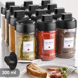 Комплект бурканчета за подправки Kosova 430KSV8839, Стъкло, 0.300л, 12 броя, Прозрачен