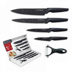 Комплект ножове Bohmann BH 5256, 5 броя, Мраморно покритие, Акрилна поставка, Червен