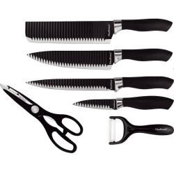 Комплект кухненски ножове от Royalty Line. Сигурни, издръжливи и качествени остриета, които не се затъпяват лесно, тази серия ножове е вашето решение за лесно готвене. Независимо дали се готви у дома или в търговски ресторант, този комплект ножове предоставя пълен набор от кухненски ножове и остриета за всички вашите нужди при приготвяне на храна. Лесен за употреба и устойчив, този комплект е изработен от неръждаема стомана, устойчива на корозия, гарантираща дълготрайна острота при многократна употреба.
