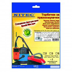 Комплект торбички за прахосмукачки Nitec Т479, 2бр торбички, 2 бр микрофилтъра, Бял/сив