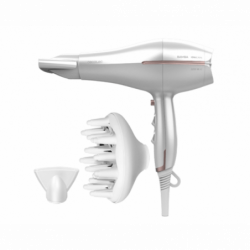 Мощен и професионален двигател с променлив ток, с мощност 2200 W за бързо и равномерно изсушаване на косата.